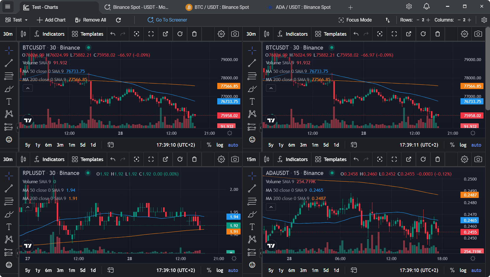 Multi-chart crypto setup