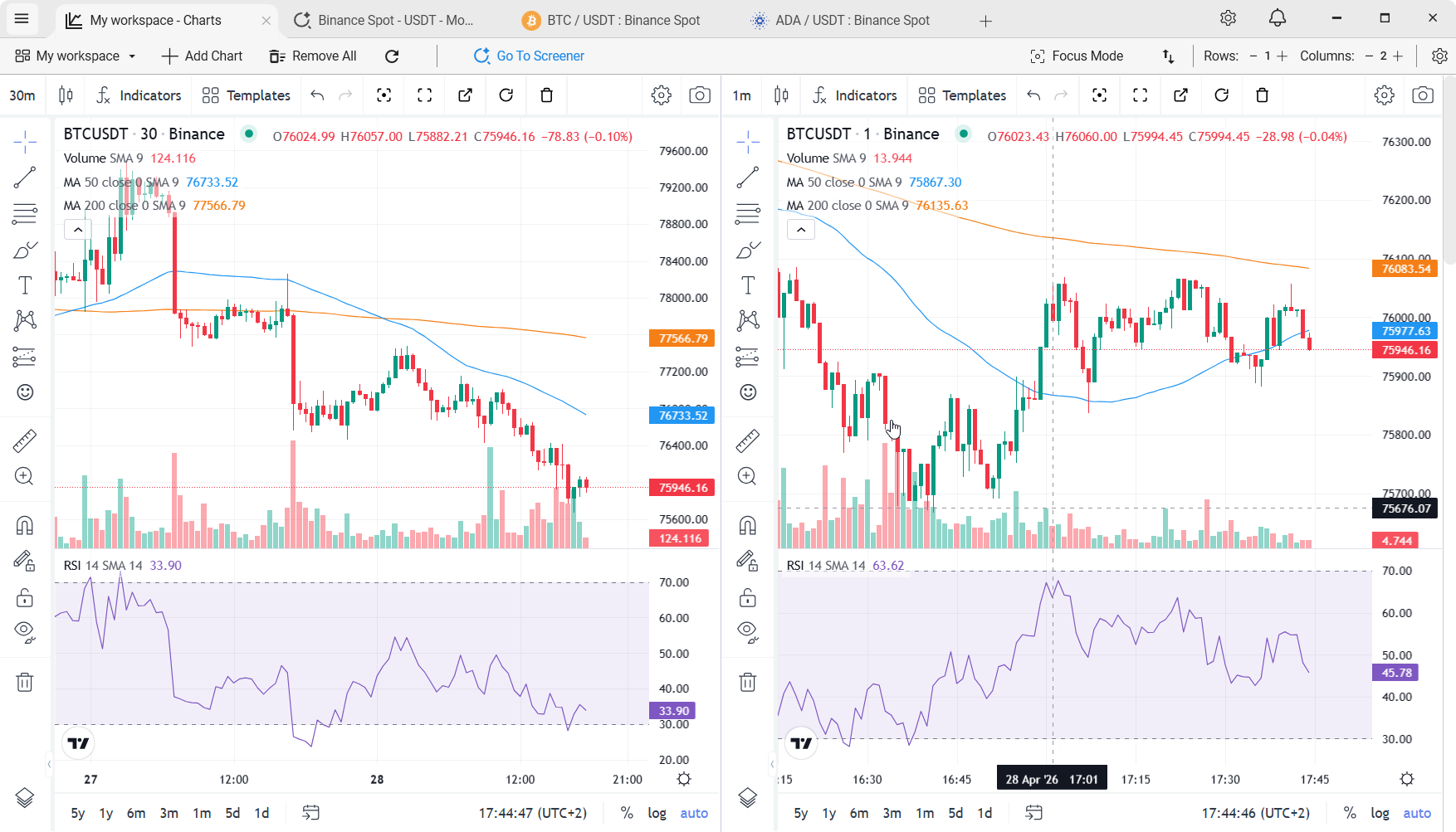 - Detached chart views inherit everything. Pop a chart out of a multi-chart workspace into its own window, and all your indicators and drawings come with it. Re-dock it and they're still there.